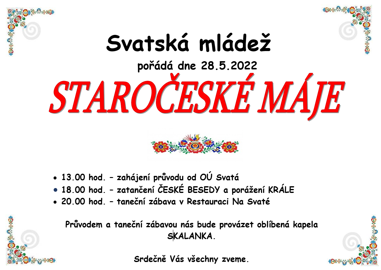 Svatská mládež Vás srdečně zve dne 28.5.2022 na STAROČESKÉ MÁJE.